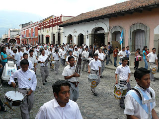 Banda de Alumnos desfila gallardamente por las calles Antigueñas.
